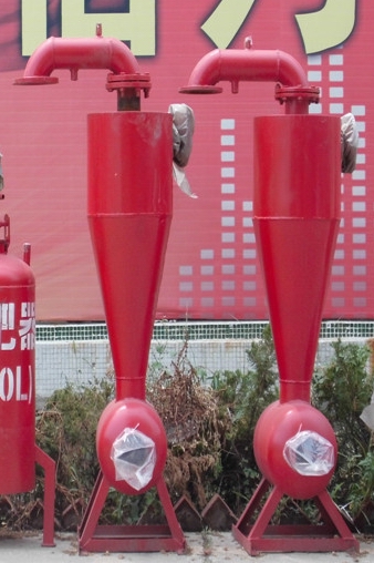 离心式过滤器基于重力及离心力的工作原理,清除重于水的固体颗粒。水由进水管切向进入离心过滤器体内,旋转产生离心力,推动泥沙及密度较高的固体颗粒沿管壁流动,形成旋流,使沙子和石块进入集砂罐,净水则顺流沿出水口流出,即完成水砂分离。