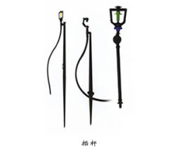 2、也可以配合插杆和毛管垂直正立安装,用于果园、苗圃、家庭花园、条带型绿化等场所的微喷。